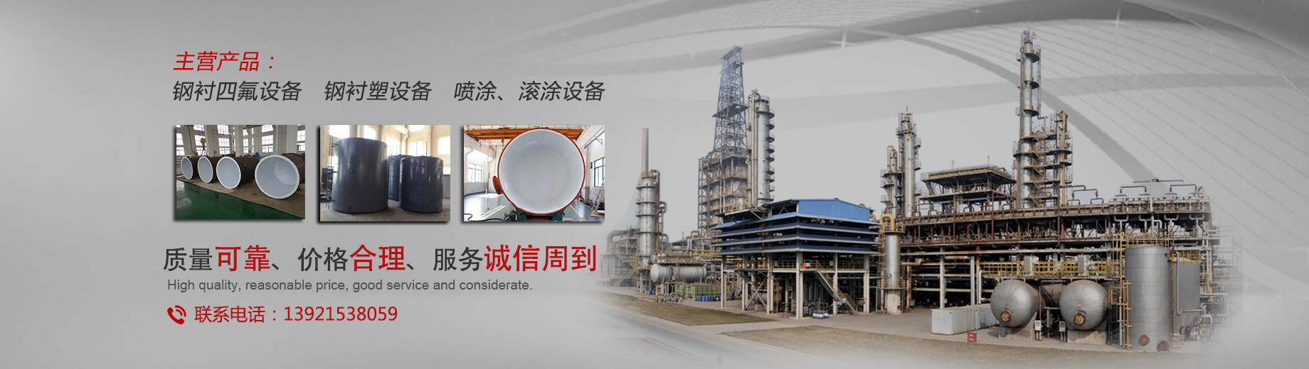 我公司專業(yè)生產(chǎn)防腐設(shè)備,主要產(chǎn)品有:鋼襯四氟、鋼襯四氟儲(chǔ)罐、反應(yīng)釜內(nèi)襯四氟、鋼襯四氟管道,四氟換熱器、PTFE襯里設(shè)備、鋼襯塑儲(chǔ)罐、鋼襯塑管道、攪拌槳等等。產(chǎn)品可應(yīng)用于化工、氯堿、海水淡化、印染、顏料、儲(chǔ)運(yùn)、電廠、稀土、冶金、電子、制藥、釀造等行業(yè)...